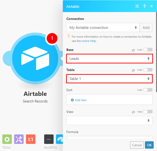 Okay, now open the new “Search records” Airtable module (the third one on your scenario).