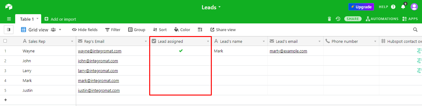 You’ll notice the “Sales reps” and the “Lead assigned” columns, which are important here.