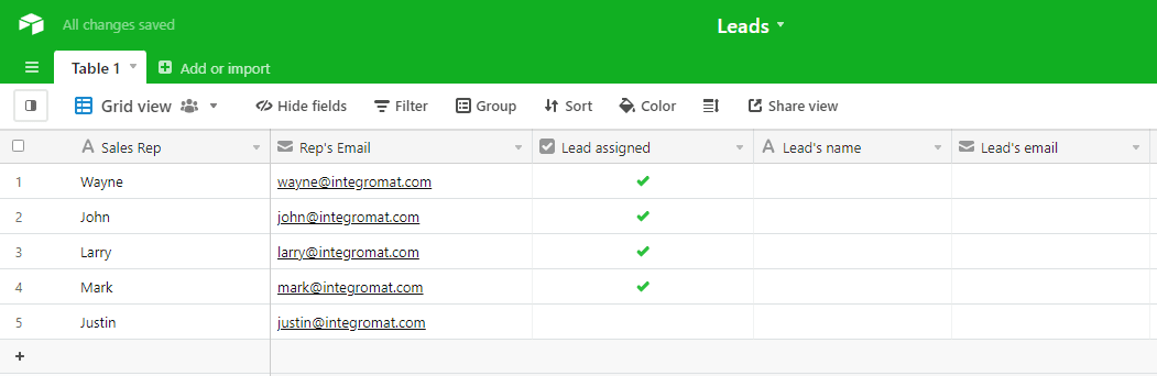 When a rep is assigned with a lead, the “Lead assign” column is automatically ticked, which removes that rep from the next randomized selection. This gives all the reps a fair chance, which is what we are after here.