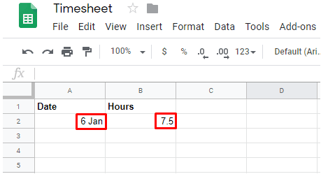Create a Google sheet and label it. We have labeled ours Time-sheet. Make sure to add column headers describing the data that you want to store in the sheet: