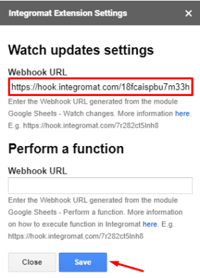 Finally, paste the link into the Webhook URL field and click Save: