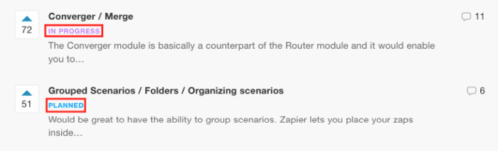 I’d like to let you know that Make recently moved to Canny to manage feedback and feature requests so what you read hereon is based on first-hand experience.