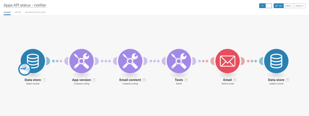 As a cloud-based integration product featuring hundreds of apps, Make monitors APIs 24/7. Naturally, we automated the whole process using our product, eating our own dog food.