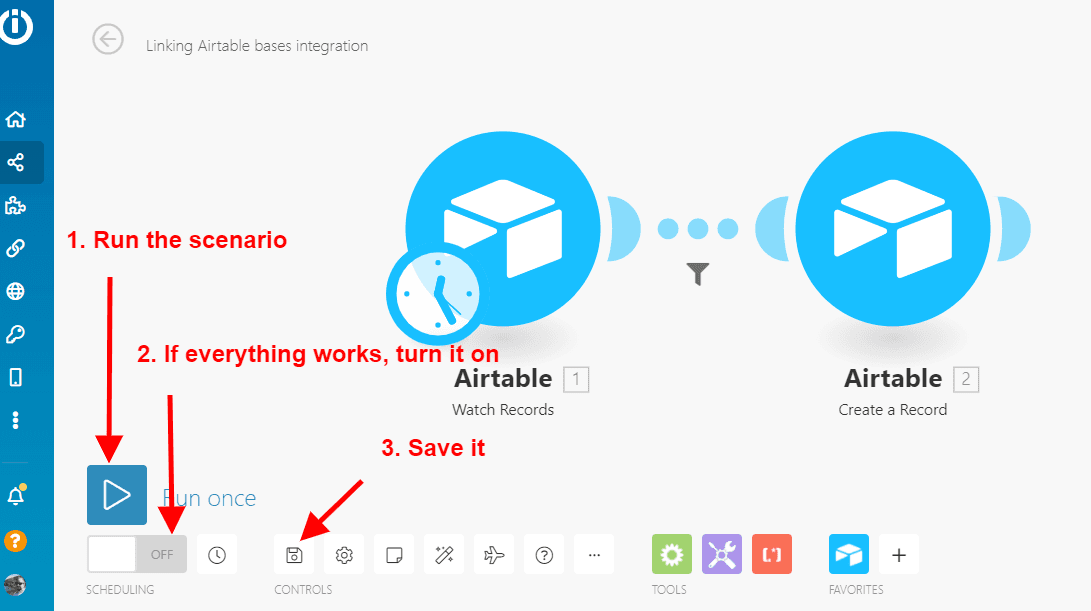 After the bases have been created, we are going to set up the Make scenario that will allow us to link both bases.