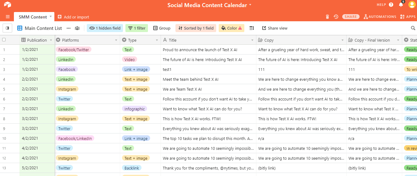 What’s most, these content calendars often pose a challenge: since creating content for social media requires the participation of several team members (managers, writers, designers), using one base involving everything and everyone is a recipe for chaos.