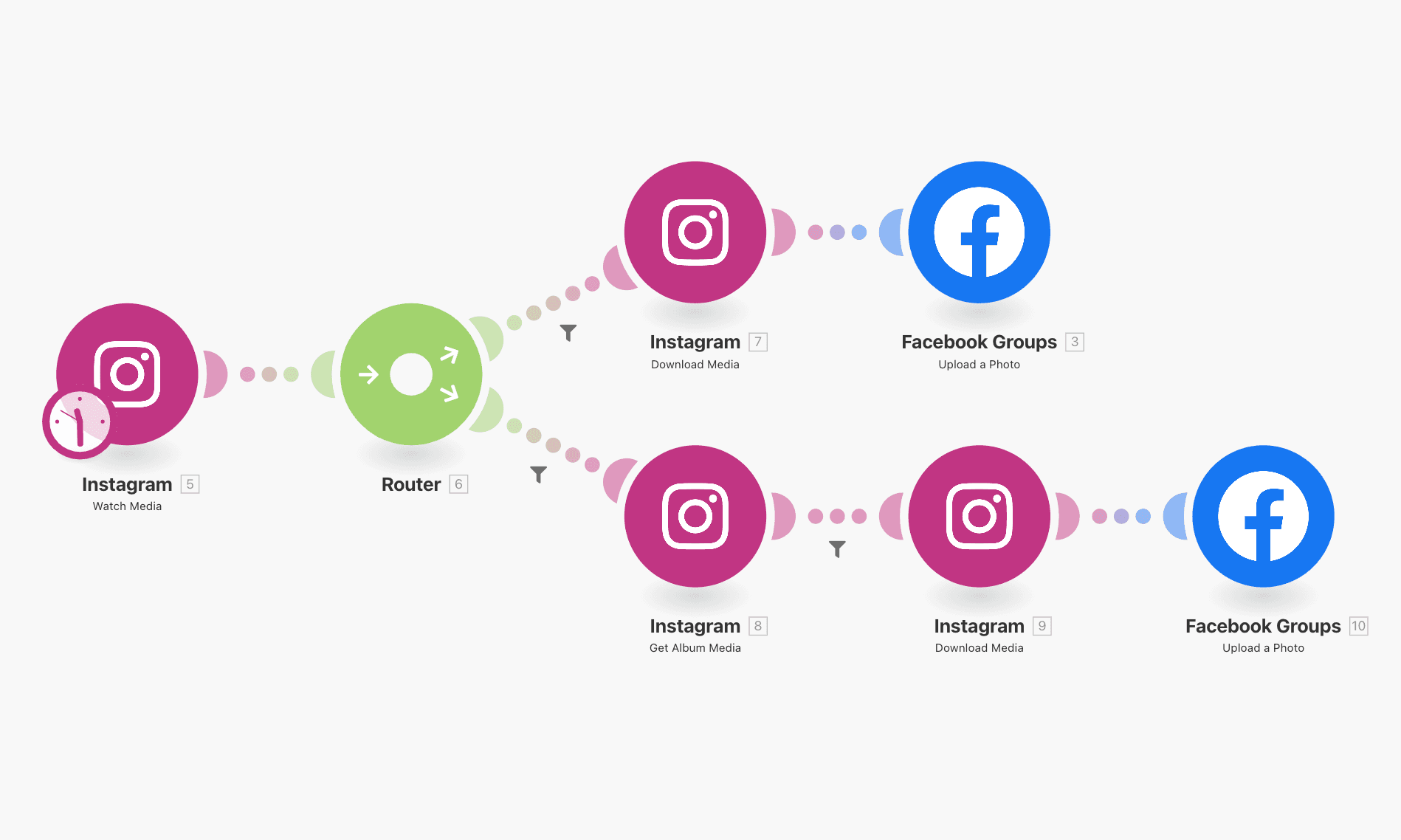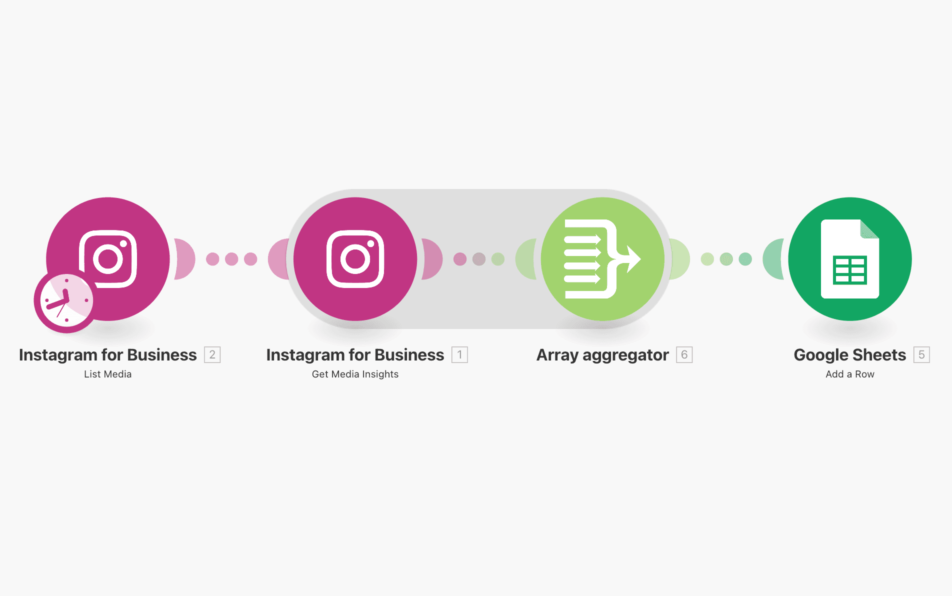 With Make, you can connect Instagram for Business with other apps and create virtually any automated workflow you can think of.