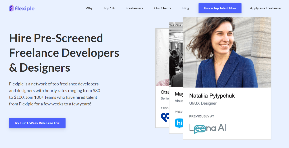Flexiple defines itself as a network of freelance developers and designers that partners up with top startups to help them find quality tech talent.