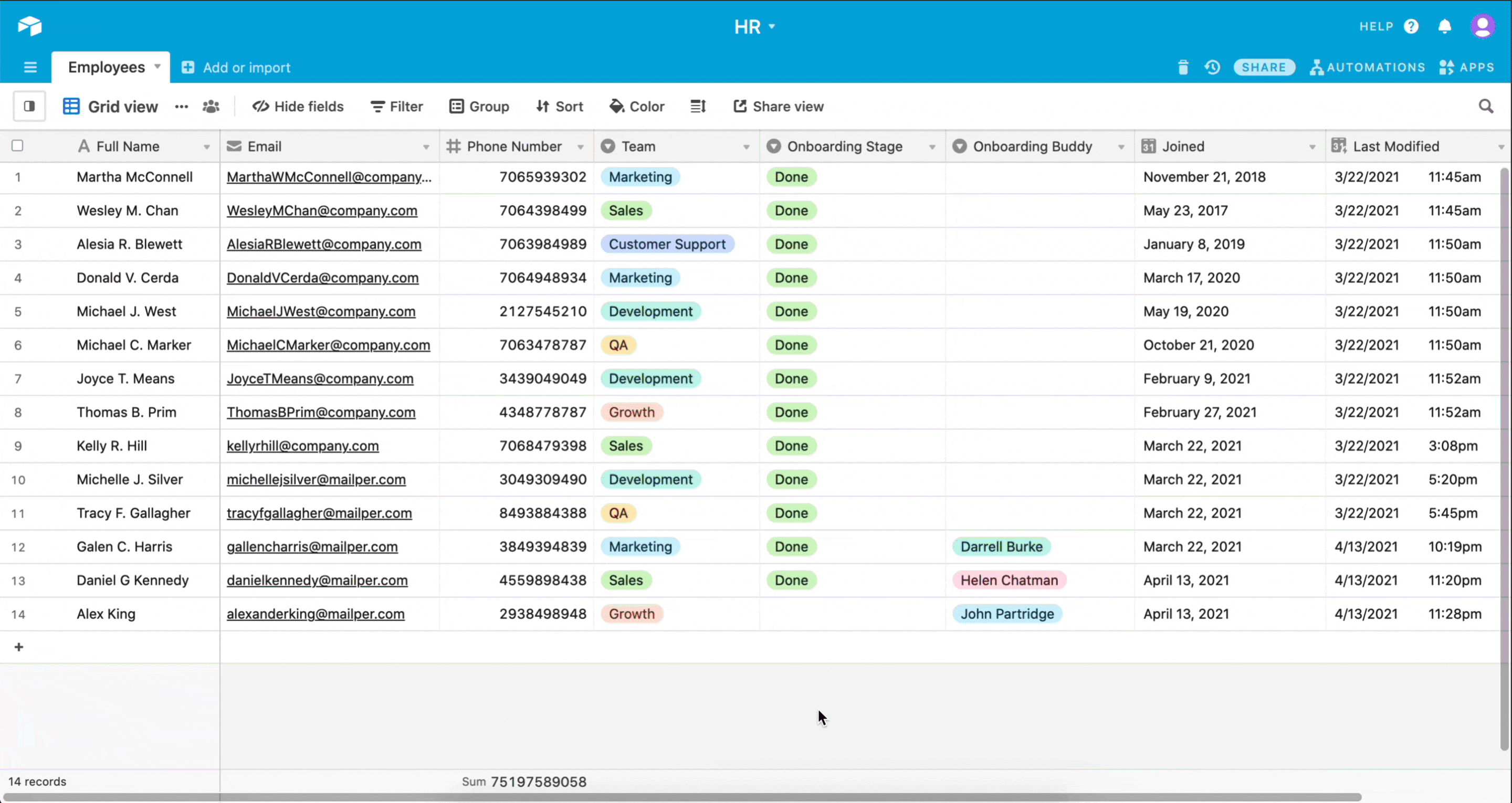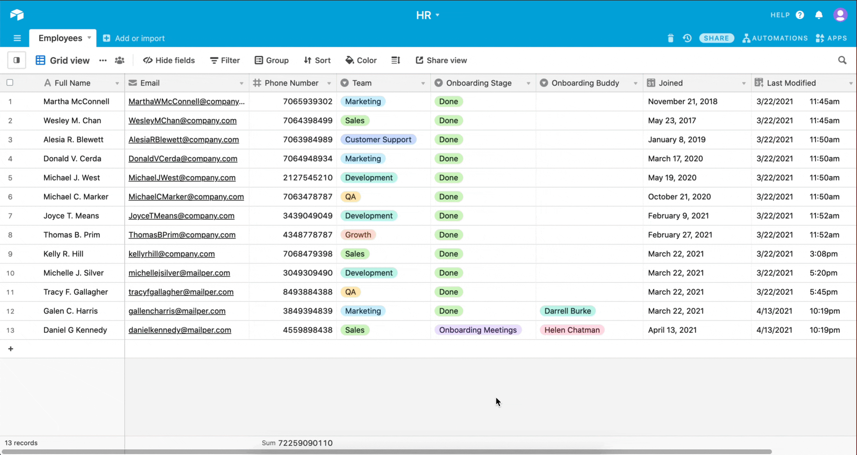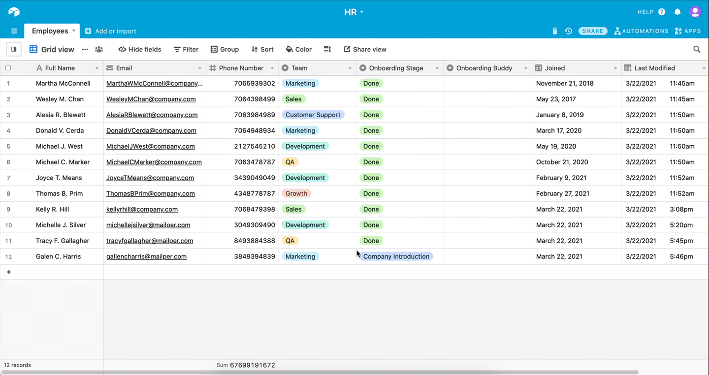 Before we automate, we will set up an HR database in Airtable. The database will contain records for all our employees.
