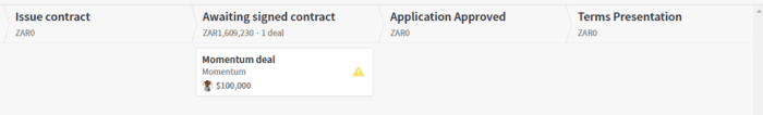 First, select Issue contract from the Stage menu to only return deals in this stage.