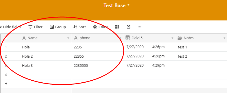 And here’s the result after I run the scenario. First of all, here's the Airtable base as it gets filled with data: