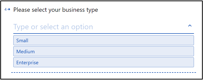 The form should contain a multiple choice question similar to: “Please select your business type”.