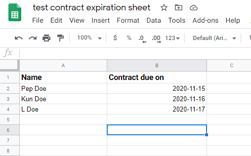1. I manually include basic data on a Google spreadsheet (employee name, contract expiration date)