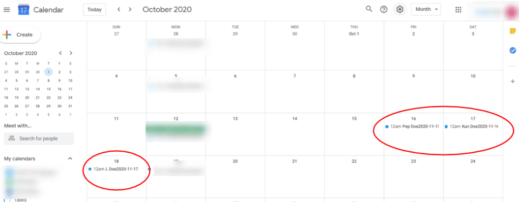 5. To conclude, the end result: the scenario watches the spreadsheet and creates the calendar events.