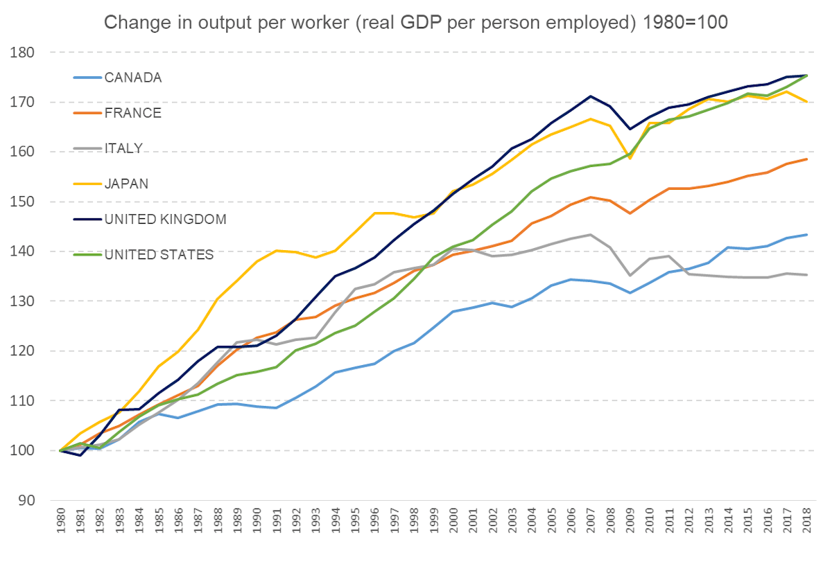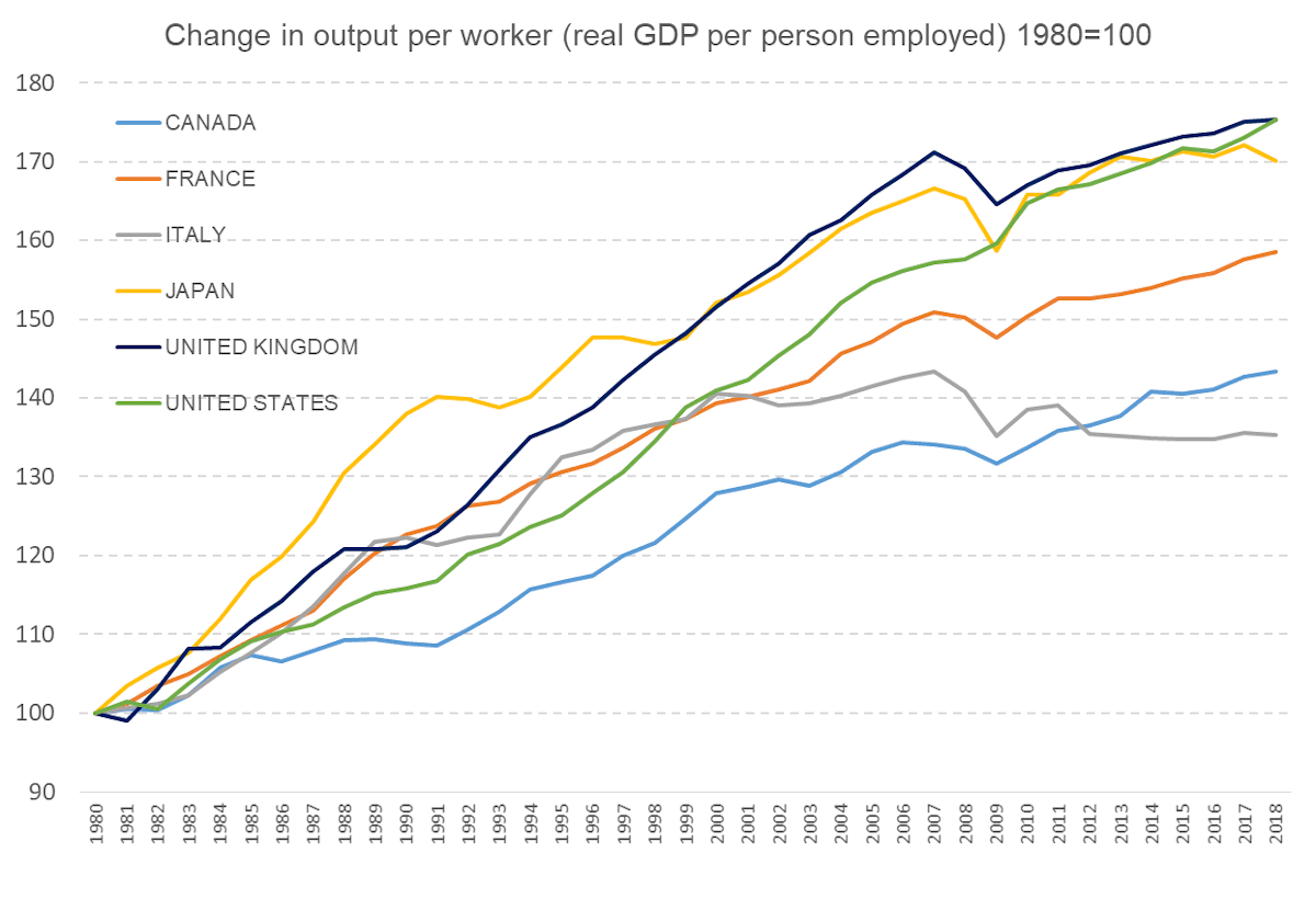 While the workplace has become increasingly automated and technological, global productivity growth is slowing down: