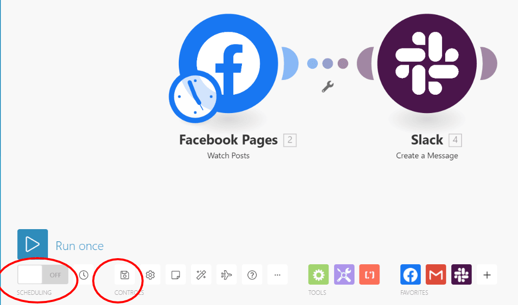 Since we want the posts to be automatically shared to a Slack channel the moment they get published on your page, we will now add a Slack module to our Make scenario.