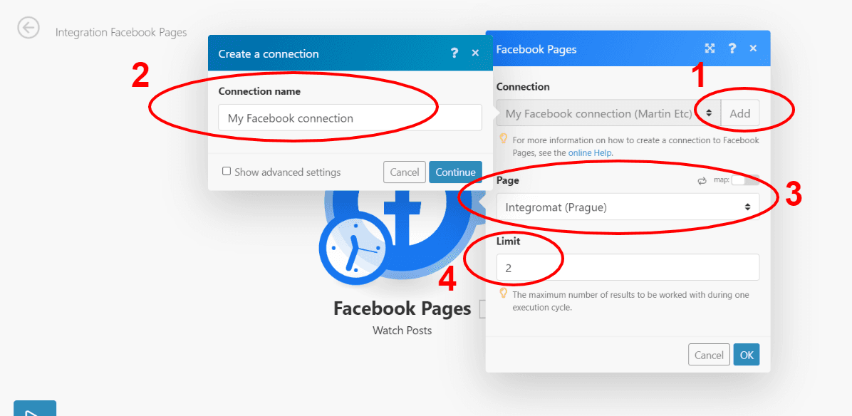 In the module’s configuration box, select the number of posts you want Make to watch (2-3 is fine in this case), and then hit “OK”.