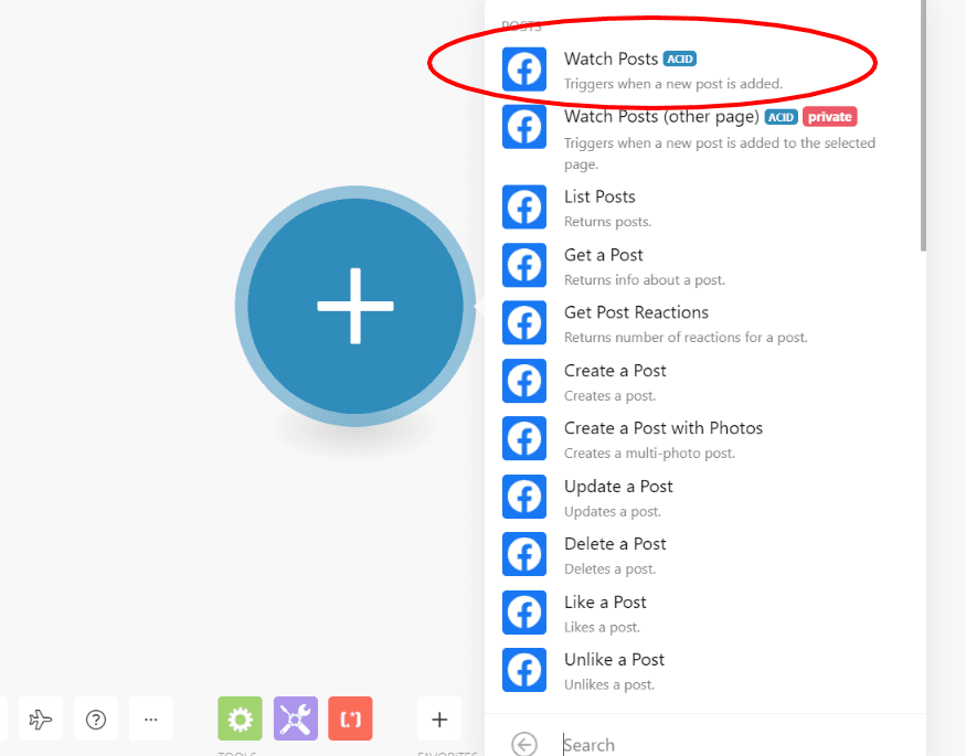 As you can sense, this module will automatically monitor your Facebook Page for new posts. So, each time a post gets published, Make (through the Facebook API) will notice it.