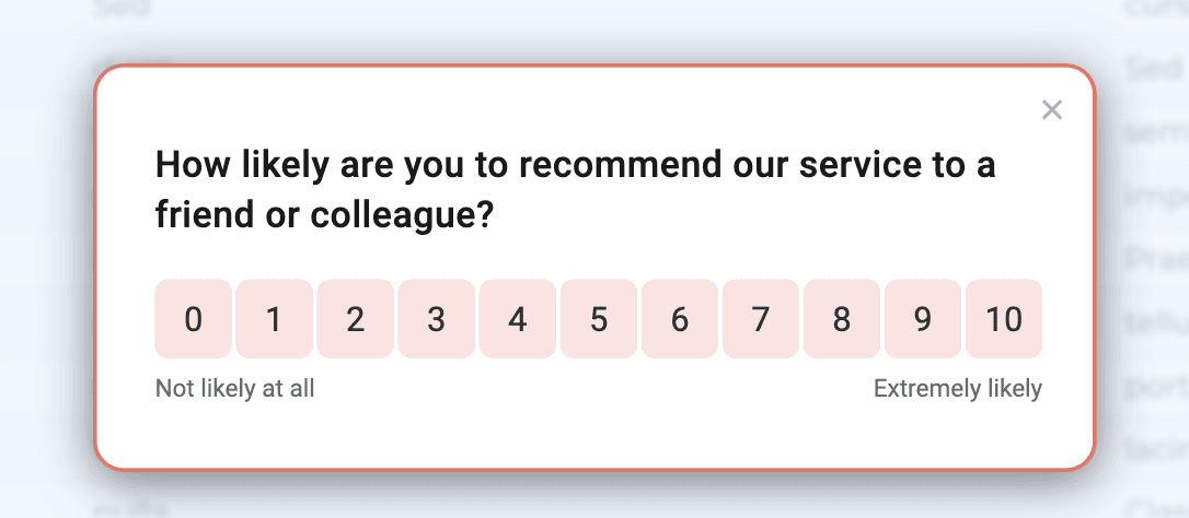 Net promoter score (NPS) surveys: These help determine the overall satisfaction levels among customers by measuring their likelihood of recommending you to others. What sets NPS apart from other surveys is that you can use it to evaluate almost every aspect of your company’s operations - product, sales, support. To do that, you just need to amend the primary NPS question to inquire about a specific interaction.