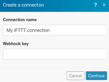 Click ‘Add’ next to the Connection drop-down to create a new connection between Make and IFTTT. You will be requested to fill in the key obtained in the last step