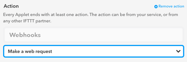 Insert the action Webhook — Make a web request. The applet should look like: IfYour triggerthen Webhook — Make a web request