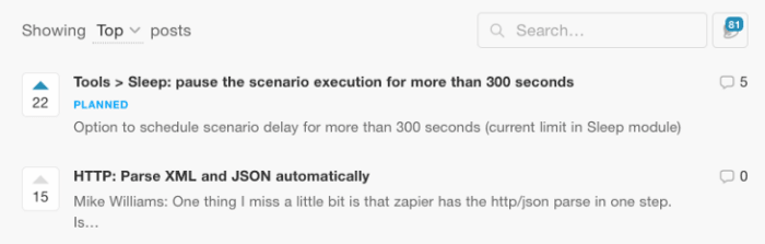 I’d like to let you know that Make recently moved to Canny to manage feedback and feature requests so what you read hereon is based on first-hand experience.