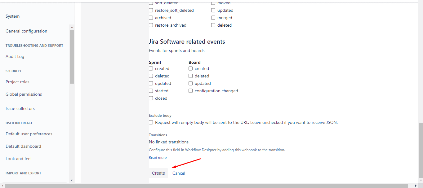 Let’s start with the first one. You can create webhooks straight from your Jira space, as long as you are an admin or have “global permission” from the administrator. In addition, some coding skills are required in order to make the most of them later down the line.