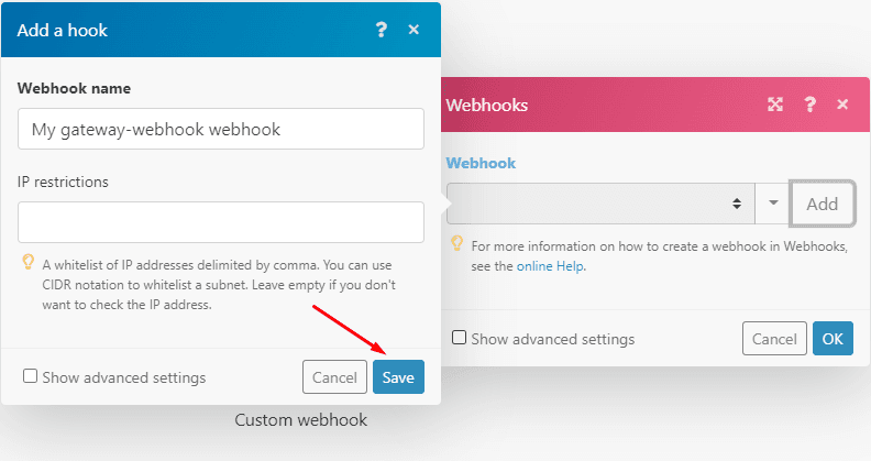 You will find yourself once again in the original configuration box for the module. If you look closely, you’ll notice that there is a URL available - that is your new custom webhook URL.