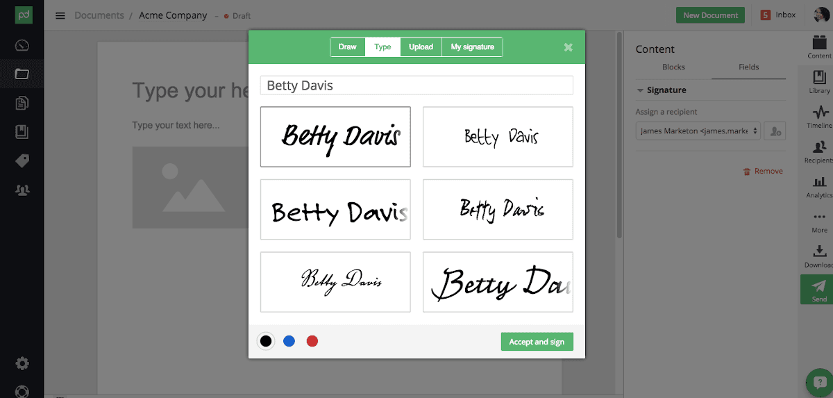 E-signature software gives users the opportunity to digitally sign their document and collect legally-binding consent from collaborators, customers and vendors.