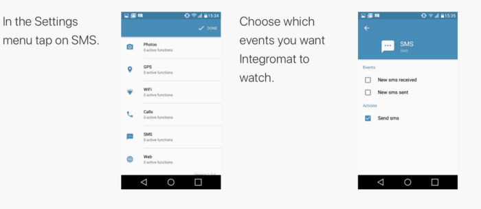 In your Make mobile app, go into the settings menu and tap on SMS. It will bring up a list of events you want Make to watch. In this case, choose to Send SMS.