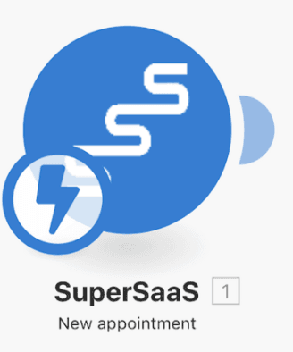 Start by creating a new scenario, by clicking the “Create a new scenario” in your dashboard. First, search for the SuperSaaS app and add the New appointment trigger.