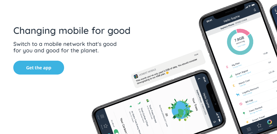 First, we are the first carbon-neutral phone network in the UK. This means that for every text you send, call you make, or video you watch we work out the carbon footprint of that usage and offset it through sustainable reforestation. We also offset the amount of energy needed to charge an average phone, as well as the CO2 associated with the manufacture of an average handset over a 24-month period.