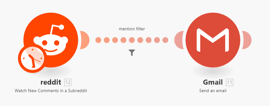 I created individual scenarios like the one above to track Make mentions on specific subreddits. My scenarios routinely watch for mentions within the posts, post titles, links, and comments, and notify me via email whenever there is a match.