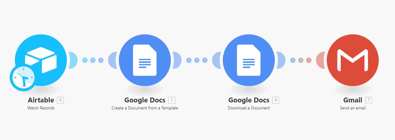 The act of connecting these apps together is done through the platform’s visual builder, and the automatic execution is determined by parameters the user defines.