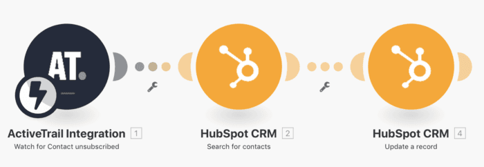 In this scenario, Make will watch for contacts who unsubscribe in ActiveTrail and report the status change to HubSpot CRM.