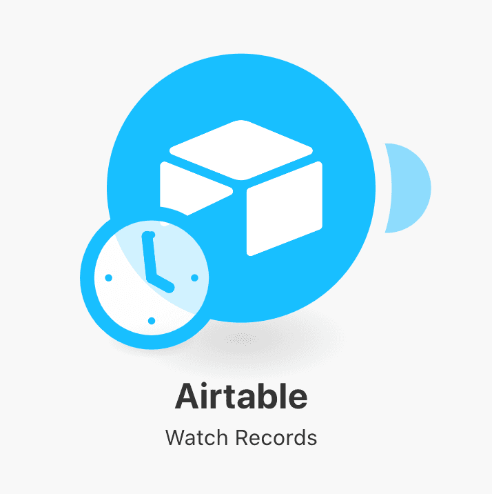Like the previous automation, this scenario will start with the Airtable > Watch records module.