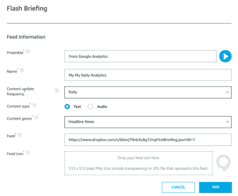 In this tutorial, we will focus on a flash briefing containing data from your Google Analytics.