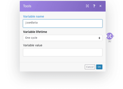 Click on the module and feel free to choose any variable name (e.g. jsonData).