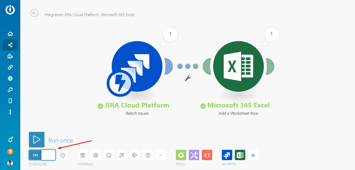 Good! Your first scenario is up and running, and will send new Jira issues (along with the relevant data) to your Excel spreadsheet.