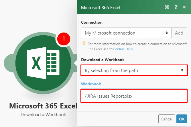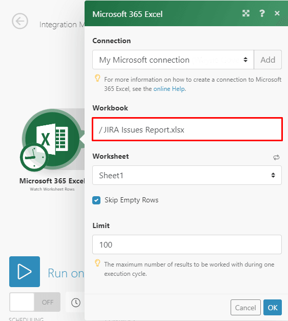 Once activated, the scenario will monitor Jira for issues, and add them to Excel automatically.