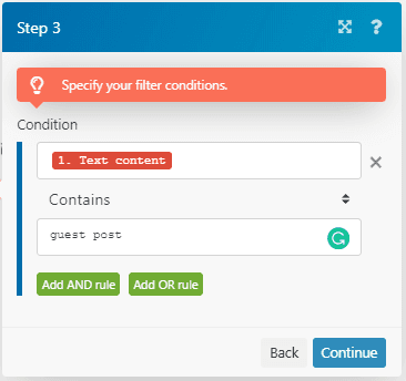 Now you are all set! Whenever an email containing the words “guest post” arrives, it will be automatically forwarded to the people you have specified.