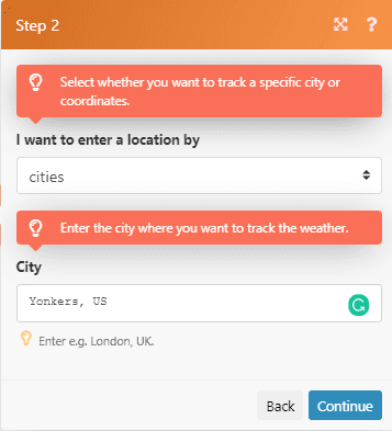 After this is done, you will find yourself in your Make dashboard. Here, all you have to do is specify the location for which you wish to track the weather.