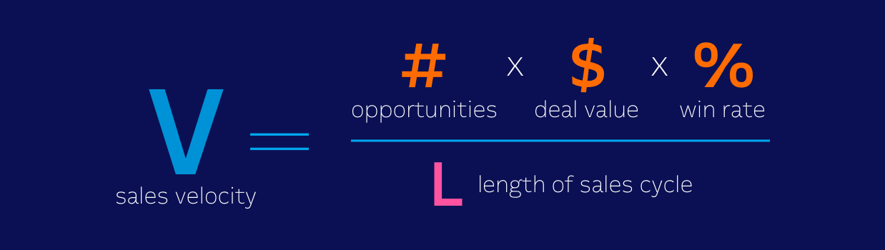 To calculate sales velocity, you have to multiply the number of opportunities by the average deal value and win rate, and then divide the result by the length of your sales cycle. The result of this operation will be your business' sales velocity.
