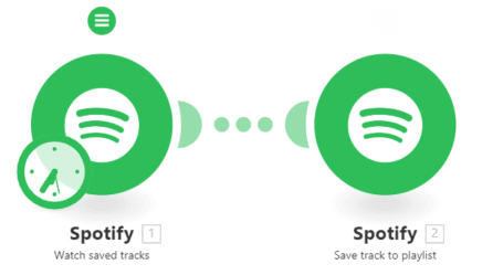 While it has a crazy-sounding name, Make’s Spotify-Spotify integration is quite useful: every time you save a new track on Spotify, Make will automatically add it to a playlist you specify.