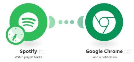 This scenario links your Google and Spotify accounts, and automatically sends a push notification via Chrome when a new track is added to the Spotify playlist you specify.