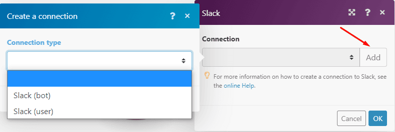Connecting your Slack account to Make is a little different than the Airtable connection.