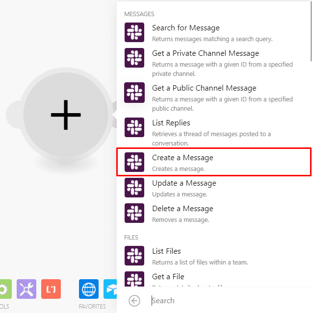 Now for the final module in the scenario, the Slack > Create a message module.