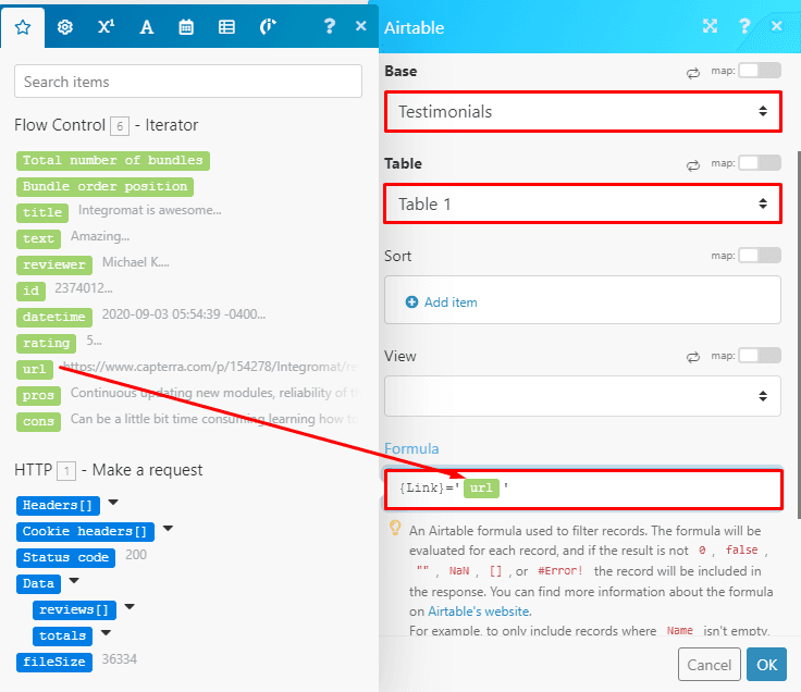 However, you don’t need to worry about this, as there’s a way to prevent duplication and only store new testimonials in Airtable. Stay tuned for that.