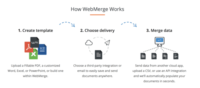 WebMerge is an online platform that allows you to easily collect data, populate a document and send it to where it needs to be.