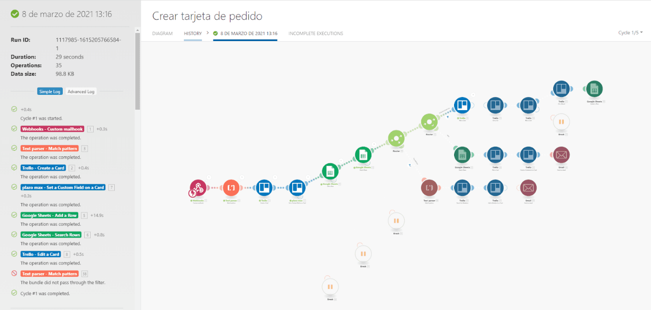 So after researching a number of options, they decided to create their solution using Make, plus a number of other well-known tools like Trello and Google Sheets.