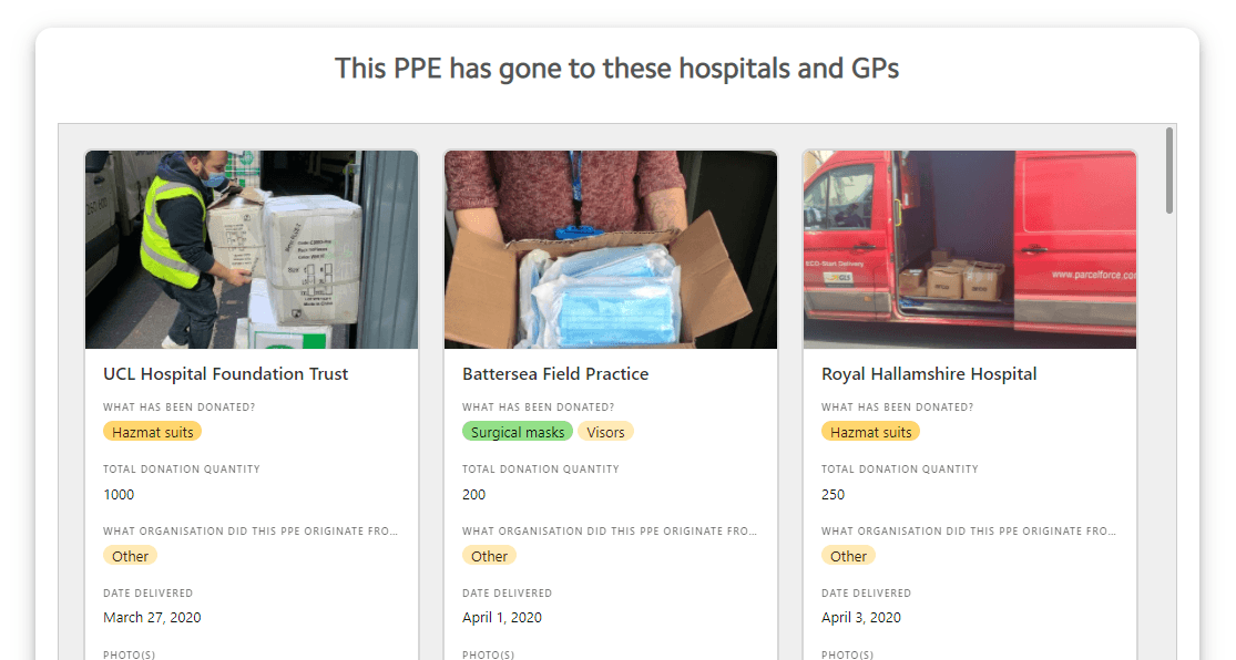 At the same time, the platform allowed hospitals and general practitioner offices to either request PPE items, and donate them as well.